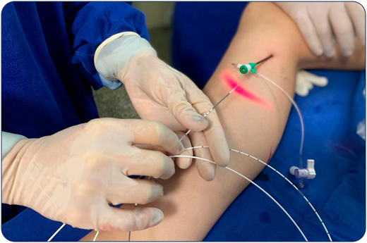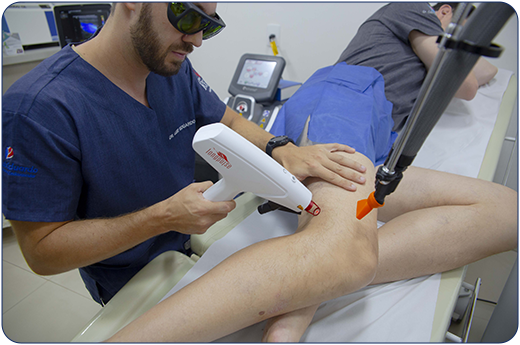Com o laser transdérmico conseguimos “queimar” os vasinhos. Ele também é utilizado em associação com outras técnicas (seja com espuma ou escleroterapia) para um resultado mais eficaz.